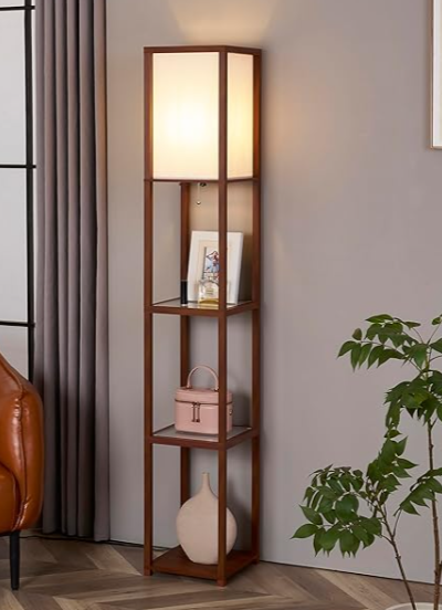 7. LED Floor Lamp with Shelves – Surprisingly Useful